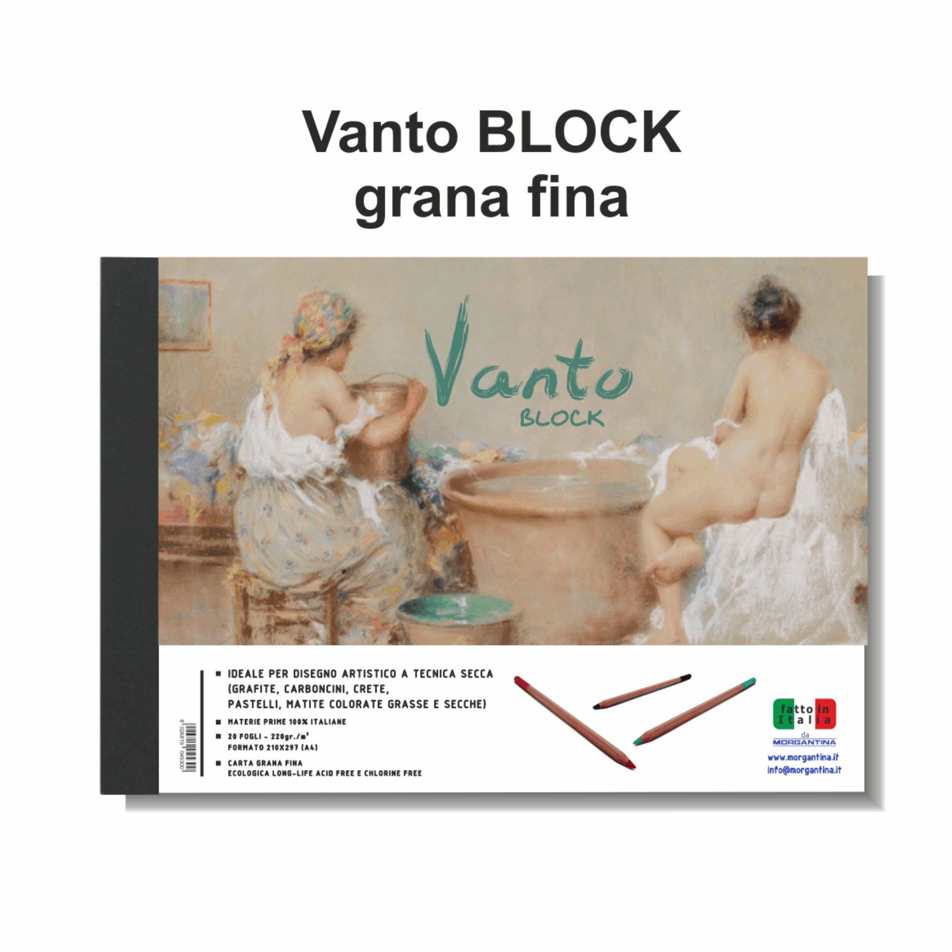 Il Blocco disegno vanto Grana Fina è un blocco da disegno di alta qualità, apprezzato da artisti e appassionati per la sua carta a grana fine naturale, perfetta per tecniche secche come grafite, carboncino, crete, pastelli e matite colorate.