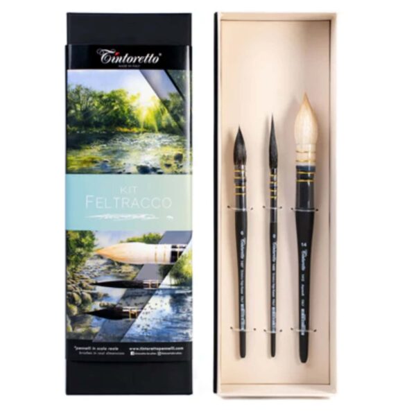 Il Cofanetto 3 Pennelli Acquerello Linea Feltracco Serie 7908 Tintoretto è un set di pennelli di alta qualità. Studiato appositamente per acquerellisti che cercano precisione, fluidità e controllo in ogni passaggio della loro tecnica pittorica.