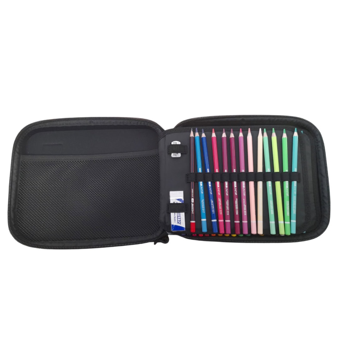 Infatti, questo astuccio offre tutto ciò che serve per disegnare ovunque, a scuola o nel tempo libero.